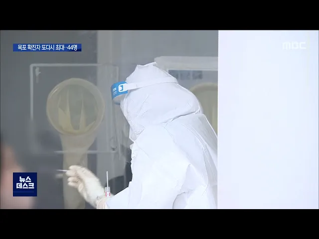 ◀ANC▶주말과 휴일 이틀동안 전남에서는 200명에 가까운 코로나19 추가 확진자가발생했습니다.방역당국은 확산세를 막기 위해비상근무에 들어갔고 휴일에도 선별진료소에는 코로나 진단검사를 받으려는 시민들의 발길이 이어졌습니다. 김 윤 기자가 취재했습니다.◀END▶ 전라남도의 임시 선별진료소가 꾸려진목상고등학...