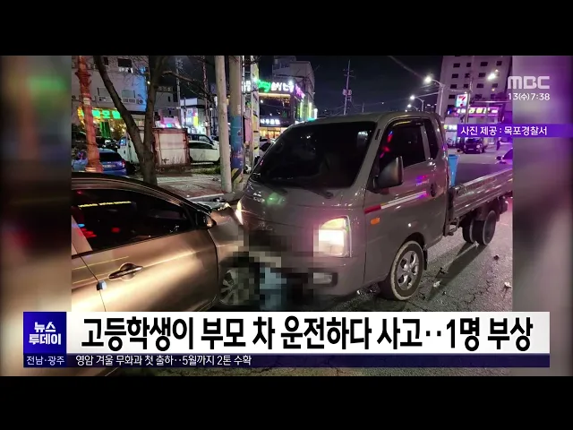 어제(12) 오후 7시 40분쯤목포시 죽교동의 한 삼거리 교차로에서17살 고등학생이 몰던 차량이마주오던 승용차를 들이받으면서또다른 화물차와의 2차 사고로 이어졌습니다.이 사고로 승용차 운전자인 50대 여성이 병원으로 이송된 가운데경찰은 사고를 낸 고등학생이부모의 차를 타고 나온 것으로 보고정확한 사고 경위를 조...