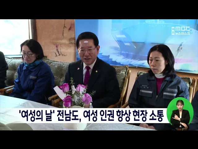 김영록 전남지사가116번째 세계 여성의 날을 맞아서남권 조선산업의 영웅인 여성 용접사들과간담회를 갖고 여성근로자의 인권 향상을 위한다양한 의견을 청취했습니다.김 지사는 오늘 간담회에서여성이 충분한 기술 역량을 갖춰 지역을 이끌산업역군으로 성장하도록 전라남도 차원에서적극 지원하겠다고 약속했습니다.