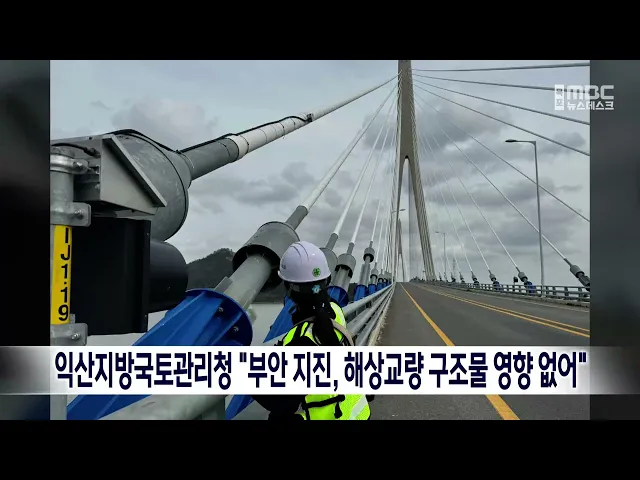익산지방국토관리청이지난 12일 전북 부안군에서 발생한 규모4.8의 지진과 관련해 인접해있는 해상교량들의 구조물안전에 영향이 없는 것으로 분석했습니다.익산지방국토관리청은진원지 주변의 현수교 등 해상특수교량 21개의 긴급 점검을 실시한 결과 안전 관련 특이사항이 없다고 밝히고향후 해상교량 구조물 변화를 지속...