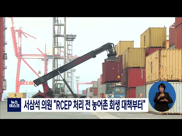서삼석 국회의원이 역내포괄적경제동반자협정 국회 비준동의안 처리에 앞서 농어촌 회생 대책부터 마련해야 한다고 주장했습니다. 서 의원은 자유무역협정이 농어업의 희생을담보로 하지만 수혜산업의 이익을 피해산업에 지원하자는 취지의 무역이득공유제가 도입되지 않아 최소한의 공정성도 확보하지 못했다고 지적했습...