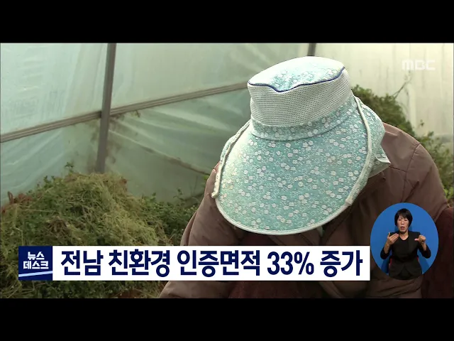 전남지역 친환경 인증면적이 크게늘었습니다. 전라남도에 따르면지난해 말 기준 전남의 친환경 인증면적은4천259헥타르로 2천13년 대비 33% 증가했고특히 유기농 면적은 2천67헥타르로318%나 늘었습니다. 전라남도는 친환경 농산물 생산, 유통 인프라 구축 사업에해마다 2,3곳을 선정해 최대 5억 원씩 지원하고 있습니다.