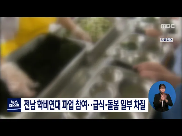 학비연대 파업으로 전남 일부 학교의 급식과 돌봄교실이 차질을 빚었습니다. 전남교육청은 학교비정규직연대회 소속 전남지역 노조원 8천912명 가운데 153명이 파업에 참여함에 따라 전남지역 2개 학교가 각각 급식과 돌봄교실을 운영하지 못했다고 밝혔습니다. 급식조리사, 방과 후 강사 등이 소속된 학비연대는 처우개선...