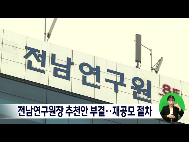 전남연구원 초대 원장 선출과 관련한단독추천안이 이사회에서 부결됐습니다.전남연구원 이사회는 오늘(6) 제6차 임시이사회를 열고 최근 단독추천된 순천대 의생명과학과 박기영 교수에 대한 '원장 최종후보자 선정안'을 부결 처리했습니다.사실상 1인 응모인데다 현직 이사가 나홀로 추천된 점이 이례적이고 심사과정도 석...