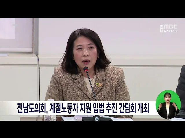 전라남도의회는 오늘(6) 도의회 소회의실에서외국인 계절 노동자 지원을 위한 입법 추진간담회를 개최했습니다. 이번 간담회는 최근 지역에서 발생한 외국인 계절 노동자 임금 착취 등 인권침해 사례를 막고 외국인뿐만 아니라 국내 노동자 등 개선책 마련을 위한토론이 이어졌습니다.