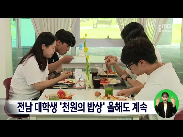 지난해 대학생들에게 천 원으로아침밥을 제공해 높은 호응을 얻었던'천원의 아침밥' 사업이 올해도 계속됩니다. 전남에서는목포대와 순천대 등 7개 대학이정부 지원금 등으로 사업을 이어나가는 가운데,전라남도는 1천 원을 추가 지원해전남 쌀로 만든 밥과 쌀 가공식품을 활용한양질의 아침밥을 제공할 예정입니다.