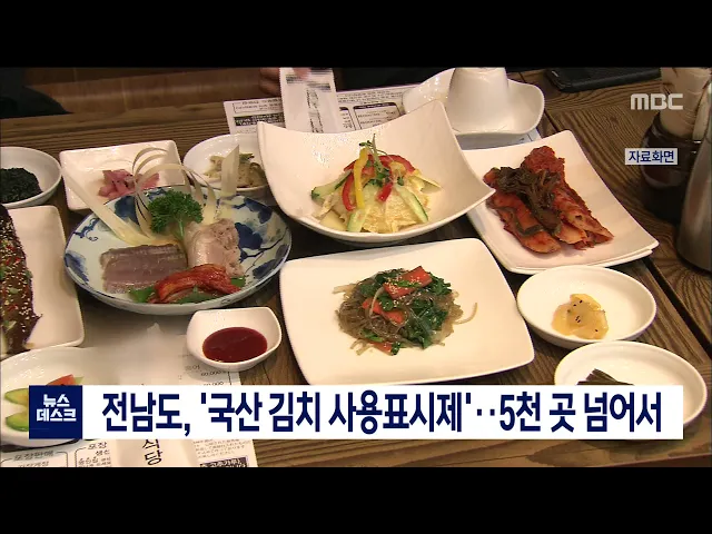 전라남도가 전국에서 첫 시행한 '국산김치 표시제'에 음식점, 학교, 공공기관 등 5천여 곳이참여해 목표를 초과달성했습니다. 인증업소는 음식점이 전체의 65%인 3천2백여 곳으로 가장 많았고학교급식소 천여 곳 등이며지난 4월 시행 이후 7개월 만입니다. 전남이 추진한 '국산김치 표시제'는 농림축산식품부의 우수사례로...