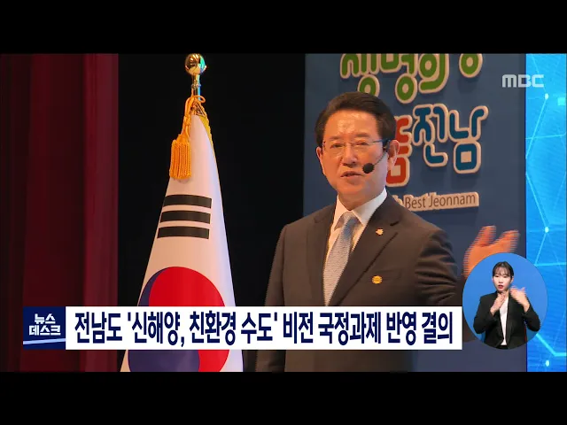 전라남도가 '신해양, 문화관광,친환경 수도 전남'을 미래 비전으로선포하고 차기 정부 국정과제로 반영하는데 힘을 모으기로 했습니다. '으뜸전남 미래전략 도민 보고회'에서 전라남도는미래 버전의 8대 추진 전략으로 해상풍력 발전단지 조성과 국립의대 설립,초강력 레이저 연구시설 유치 등을설명했습니다. 김영록 전남...