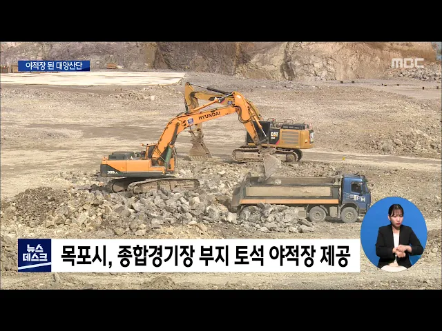 ◀ANC▶ 목포시가 수십억짜리 대양산단 땅을 단 몇백만 원에 빌려 쓰고 있습니다. 그리고 대양산단에는 난데없는 돌산이 높게 솟아 올랐습니다. 늦장 공사로 바쁜 목포종합경기장 현장에서 빼낸 돌을 그 비싼 산업단지 용지에 쌓아둔 겁니다. 카메라출동, 양현승 기자입니다. ◀END▶ ◀VCR▶ 목포대양산단 1185번지. 3...