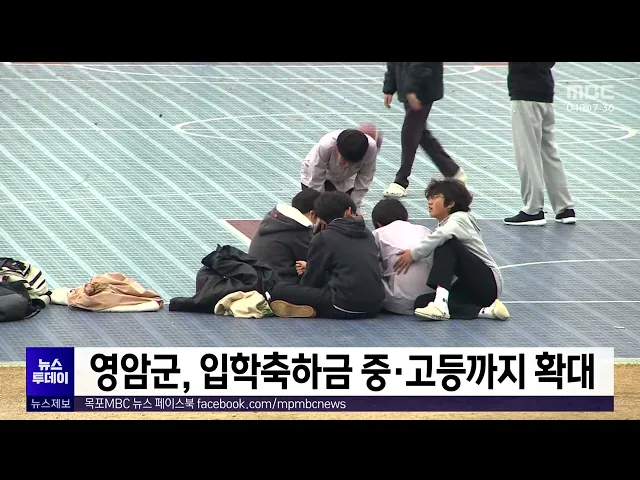 영암군은 지역인구 감소 위기에 대응하기 위해그동안 초등학생에게 지급했던입학축하금을 올해부터 중학생과 고등학생까지 확대합니다. 영암군은 올해 학교에 입학하는 학생 987명을 대상으로 초등학생 10만 원, 중학생 20만 원,고등학생 30만 원을 지역화폐로 지급할계획이며, 대상 가정은 오는 22일까지 읍면행정복지센...