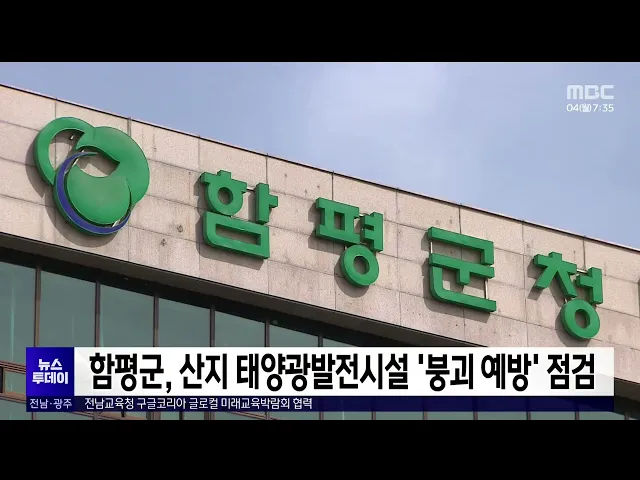 봄철을 맞아 함평군이산지 태양광 붕괴 발생을 대비한시설 점검에 나섭니다. 이번 점검은 오는 15일까지건축물이나 다중이용시설 등 재해 우려지에서3백미터 이내에 있는 산지 태양광 12곳을 대상으로 비탈면 안정도와 배수처리 실태 등을 점검하고 옹벽의 붕괴 징후 확인과 관리상태도 살펴볼 예정입니다.