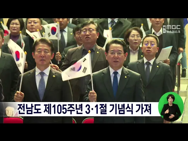 전라남도는 '독립의 꿈, 희망의 봄'을 주제로오늘(1일) 도청 김대중 강당에서 제 105주년 3·1절 기념식을 가졌습니다. 김영록 전남지사와 애국지사, 유족, 광복회원 등 7백여 명이 참석한 기념식은독립선언서 낭독과 유공자 표창, 만세삼창 순으로 진행됐습니다. 독립선언서 낭독은 독립운동가 윤한휘 선생의 후손이 암송...