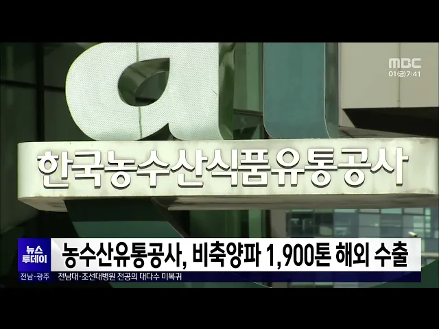 한국농수산식품유통공사는2023년산 수매 양파 1900톤을해외로 수출합니다. 유통공사는 조생종 양파 출하를 앞두고국내 수급 안정과 농산물 경쟁력 강화를 위해비축 양파 19,03톤을 베트남을 시작으로 일본과 중국 등 아시아 국가에 수출할방침입니다.
