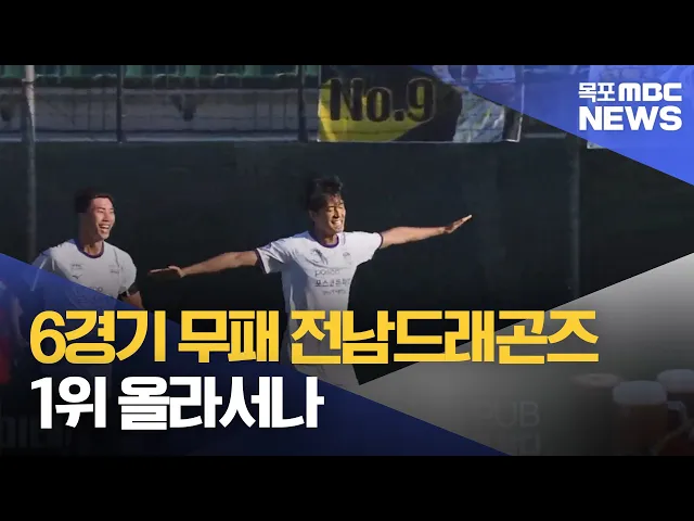 ◀ 앵 커 ▶프로축구 전남드래곤즈가 최근 승승장구하고 있습니다.K리그2에서 2위를 유지하며성적과 흥행을 이어가고 있는데요.이번 주 토요일 부천을 상대로홈경기를 치르는데결과에 따라 1위로 올라설 수도 있습니다.김단비 기자입니다.◀ 리포트 ▶선제골을 내주며 뒤지고 있던 후반,임찬울이 올린 크로스를 김종민이 밀어 ...