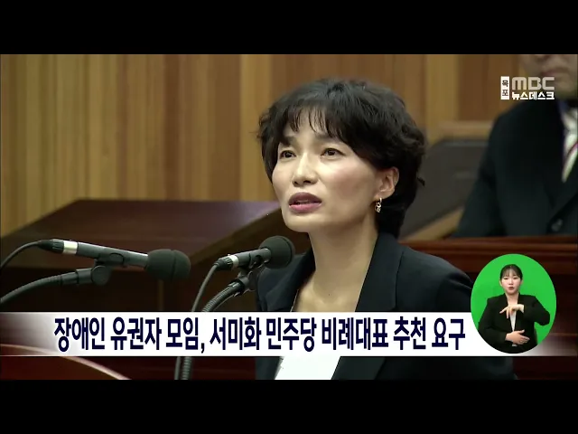 전국 장애인 유권자 시민모임은 오늘(29일) 시각장애인이자 국가인권위원회 비상임위원을역임한 서미화 유달장애인자립생활센터 소장을 민주당 비례의원로 공천할 것을 요구했습니다. 시민모임은 서미화 소장이 목포시의원으로서 장애인 조례 제·개정을 주도하고 국가인권위원회 비상임위원으로 활동하면서 사회적 약자를 ...