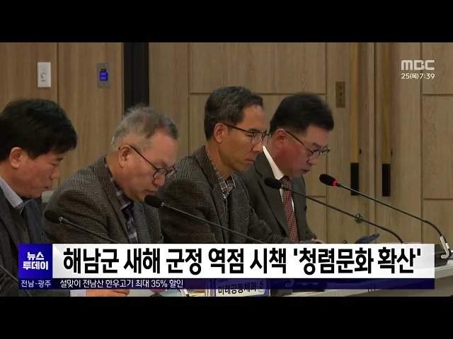 해남군 새해 군정 역점 시책 '청렴문화 확산'
