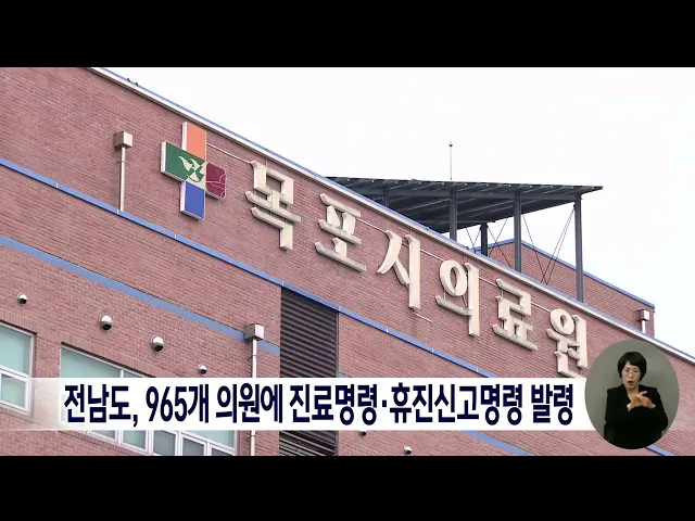 전라남도는 지난 10일 의료계 집단 휴진 결의와 중대본 결정에 따라 전남 22개 시군, 965개 의원에 진료명령과 휴진신고명령을 발령했습니다.전라남도는 이를 위해 시군 직원을 대상으로 의원별 책임관을 2인 1조로 지정해 각 의료기관에 직접 명령서를 교부하고 있습니다.한편 전라남도는 개원의 집단휴진에 따른 도민 피...