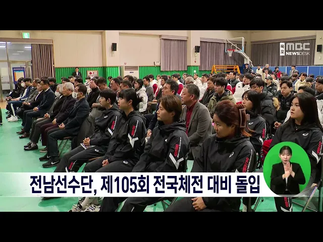 전남체육회는제105회 전국체육대회를 대비한전남선수단 훈련 개시식을 열었습니다.오늘 행사에 참석한 각 종목별 선수들과전남체육회 관계자들은 전남체육 경쟁력 강화를위해 적극 협력하고 노력할 것을 다짐했습니다.한편, 제105회 전국체전은오는 10월 11일부터 17일까지경상남도 김해시에서 개최될 예정입니다.