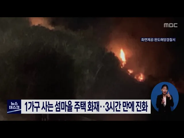1가구가 사는 섬마을에서 화재가 발생해 3시간만에 진화됐습니다. 오늘 새벽 4시 40분쯤 완도군 모황도의 주택에서 불이 나 17킬로미터 떨어진 육지에서 119와 해경대원 등 20여명이 배릍 타고 투입돼 3시간여만에 모두 꺼졌습니다. 일가족 3명은 불이 날 당시 대피해 인명피해는 발생하지 않았으며 소방당국은 화재원인과...