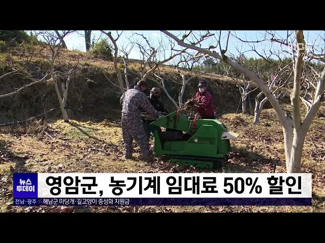 영암군이 농업인 경영부담 완화를 위해 올해 말까지 군에서 운영하는 농기계임대사업소 내 전체 농기계 임대료를 50% 할인합니다. 할인된 가격에 농기계를 임대하기 위해서는최소 7일전 예약이 필요하며, 목재파쇄기는 산불 예방과 미세먼지 저감을 위해 3월 말까지 무상으로 임대가 가능합니다.