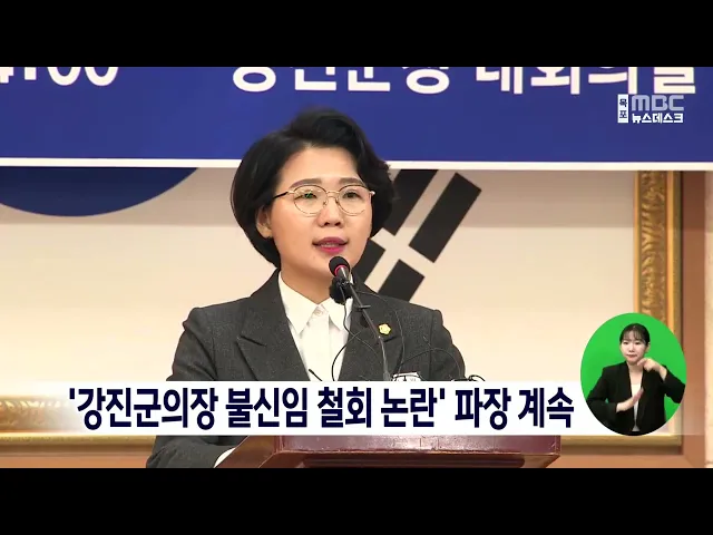 김보미 강진군의장에 대한강진군의회의 불신임안이 철회된 가운데지역 정치권에서 파장이 계속되고 있습니다. 김승남 국회의원은오늘(17) 입장문을 내고,"이번 불신임 사태를 자신이 수수방관으로 일관하고 총선을 앞두고 줄세우기를 했다"는일부 청년 당원들의 주장은 허위 사실이라며유감 표명과 함께 강력한 법적 대응...