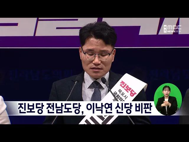 (반면) 진보당 전남도당은 전남도의회 브리핑룸에서 이낙연 신당 특별 기자회견을 열고 이낙연 전 대표의 새로운 미래는 국민의힘의 미래"라고 비판했습니다.진보당은 "이낙연 전 대표는 양당정치의 가장 큰 수혜를 누리다가 당내 권력투쟁에서 밀려나자 기득권 양당정치 타파를 이유로 느닷없이 깃발을 바꿔 든 것에 불과...