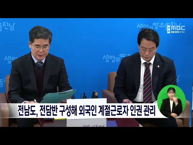 전라남도는 외국인 계절근로자 인권침해 문제를 차단하기 위해 ‘외국인 계절근로자 인권침해 방지 대책’을 마련해 추진하기로 했습니다.전라남도는외국인 근로자 인권관리 강화 전담반을 구성해 관계 부서 간 협력체계를 강화하고 외국인 인권침해 준수사항 실태조사를 정기적으로 실시하는 등 인권 사각지대가 발생하지 않...