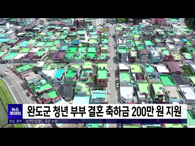 완도군은 청년층의 결혼 초기 안정적인 지역정착을 위해 올해 백쌍의 청년부부에게 '결혼 축하금'으로 2백만원씩을 지원합니다. 신청 자격은 2천22년 7월4일 이후 혼인신고한 49세 이하 초혼 또는 재혼 부부로, 부부 모두 전남도에 6개월 이상 거주해야 하며, 이중 1명은 완도군에 주소두고 있어야 합니다. 한편, 완도군은...
