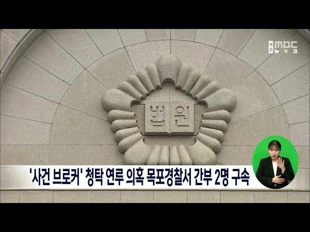 사건 브로커에게 뇌물을 주고 승진 청탁을 한 의혹을 받고 있는 목포경찰서 소속 간부 2명이구속됐습니다. 광주지법은 이들이 관련 혐의를 부인하고 있지만'증거를 인멸하거나 도주할 우려가 있어 구속영장을 발부했다고 밝혔습니다. 목포경찰서 간부들은퇴직 경찰 출신 브로커들에게 금품을 주고2021년 당시 전남경찰청장...