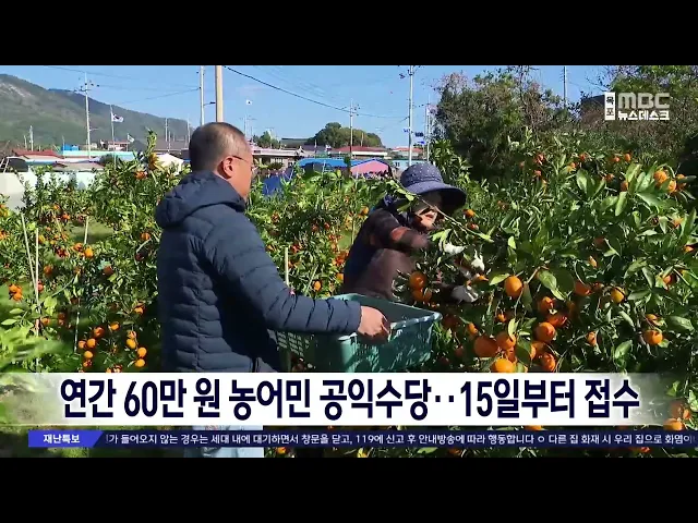 전라남도가 올해 농어민 공익수당으로60만 원을 지역화폐로 지원하기로 하고,내일(15)일부터 다음달 23일까지읍면 주민센터에서 신청 받습니다. 농어민 공익수당 지원사업은 농어업*어촌의 공익적 기능에 대한 보상과농가 소득 보전을 위해 도입됐으며,전남에서만 지난해 21만 명이 1천279억 원을 지급받았습니다.
