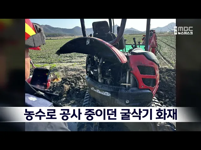 농수로 공사 중이던 굴삭기 화재
