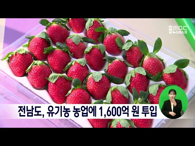 전라남도는친환경농업 경쟁력을 높이기 위해1,600억 원을 들여 유기농 중심의생산기반 확충과 친환경농산물 안전성 강화에나섭니다.분야별로는 친환경농업단지 조성 350억 원,녹비작물 종자 등 유기농업자재 지원 172억 원,친환경농업직불제 148억 원 등입니다.전남지역 친환경농산물 인증 면적은전국의 51%인 3만 5천 417...