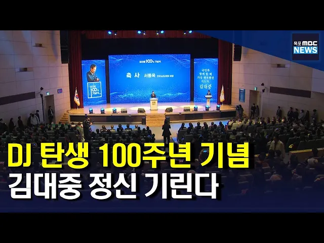 ◀ 앵 커 ▶김대중 전 대통령 탄생 100주년 기념식이 오늘 전남도청에서 열렸습니다.인권과 평화를 위해 헌신했던 'DJ 정신'을 기리는 다채로운 행사가 열리고 있습니다.안준호 기자가 취재했습니다◀ 리포트 ▶행동하는 양심으로 대한민국 민주주의 발전의 기틀을 마련한 김대중 대통령.김 전 대통령 탄생 100주년 기념식이전...