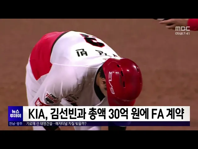프로야구 기아 타이거즈가김선빈 선수와총액 30억 원에 FA 계역을 체결했습니다.기아 타이거즈 구단은김선빈 선수와 계약기간 3년에 계약금 6억원,연봉 18억원, 옵션 6억원 등총액 30억원에 FA 계약을 했다고 밝혔습니다.지난 2008년 기아에 입단한 김선빈 선수는지난 2020년 1차 FA에 이어두 번째 FA 계약을 체결해오는 20...