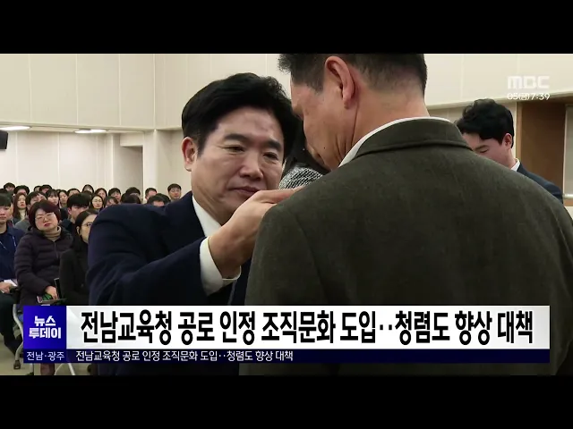 전남교육청 공로 인정 조직문화 도입..청렴도 향상 대책