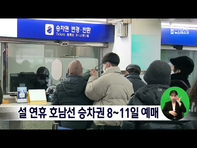 설 연휴 호남선 승차권 예매가오는 8일부터 11일까지 진행됩니다.코레일 전남본부는예매 첫날인 8일과 9일은만 65세 이상의 고령자와 장애인 등교통약자를 대상으로 사전예매를,11일은 모든 고객을 대상으로호남선 온라인 예매를 시행합니다.자세한 내용은 코레일 홈페이지나,승차권 앱 코레일톡을 통해 확인하면 됩니다.