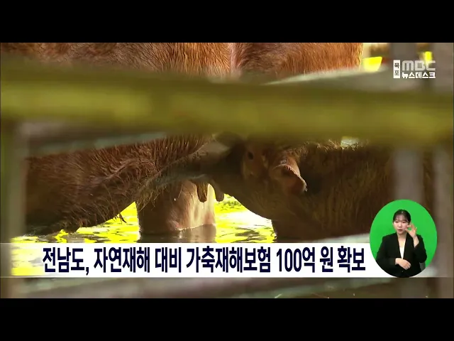 전라남도는 각종 풍수해와 폭설, 폭염 등 예기치 못한 가축 피해 발생 시 축산농가의 경영안정을 위해2024년 가축재해보험 가입비 지원금 100억 원을 확정하고 가입 홍보에 나섰습니다.보험 가입 대상 가축은 소와 돼지 등 16개 축종으로주요 보장은 가입금액 한도의 손해액에서 소는 60~80%, 돼지 80~95%, 축사는 100%를 ...
