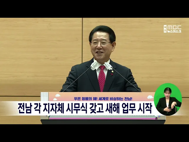 전남지역 각 지자체들이 시무식을 갖고 2024년 업무에 들어갔습니다.전라남도는오늘 오전 도청 왕인실에서 열린 시무식을 통해 갑진년 새해를 ‘함께 사는 대동정신으로 지방소멸을 극복하는 원년으로 삼아, 새로운 미래 100년을 더욱 힘차게 만들어가겠다”고 새해 포부를 밝혔습니다.목포시 등 각급 지자체들도 직원들이 참...
