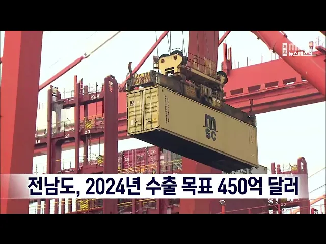 전라남도가2024년 수출 목표를 450억 달러로 정하고,중소기업이 세계시장에 효과적으로진출할 수 있는 환경 조성을 위해32개 사업에 88억 원을 지원하기로 했습니다. 2023년 11월 한 달 동안전남의 수출액은 40억 달러로전년 같은 기간보다 19.4% 상승했으며전라남도는 시장개척단 파견과 국제박람회,해외바이어 초청 수출...