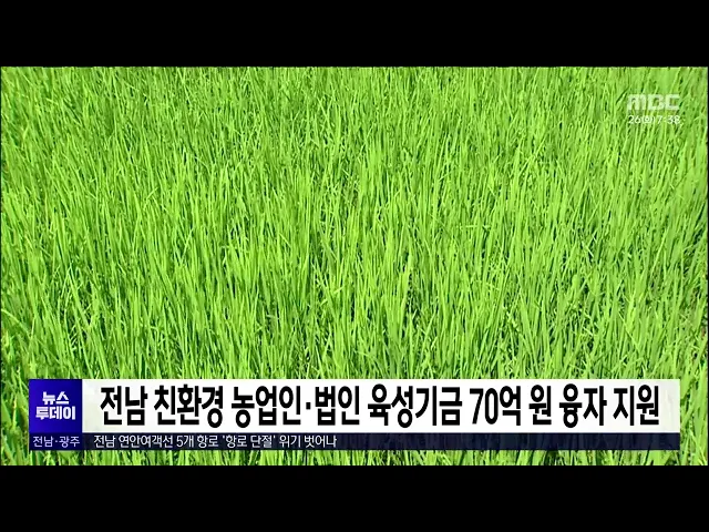 전남도는 친환경농업을 실천하는 농업인과 법인을 대상으로 70억원을 융자 지원합니다. 도는 지속가능한 친환경 농업 육성과 경쟁력 제고를 위해 개인은 1억원, 법인 5억원, 유통업체는 10억원까지 친환경농업육성기금에서 1% 저리로 융자 지원합니다. 융자신청 대상은 도내 1년 이상 거주하고 있는 친환경농업을 실천하...