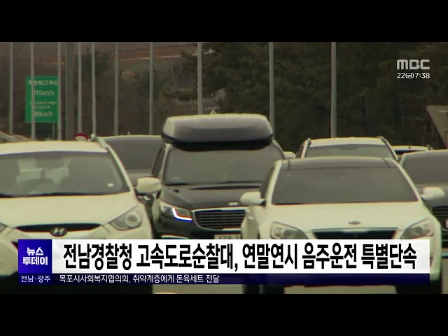 전남경찰청 고속도로순찰대는연말연시 고속도로 교통사고 예방을 위해 내년 1월 31일까지 음주운전 특별단속을 실시합니다.경찰은 유흥가와 연결되는 고속도로 주요 톨게이트에서 20~30분마다 수시로 장소를 이동하며 단속하는 ‘스팟식 단속’을 실시하는 등매주 3회 음주단속을 실시할 예정입니다.