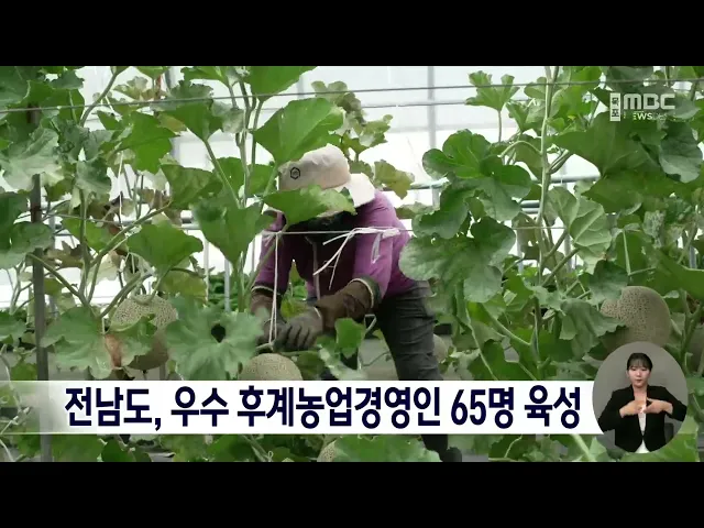 전라남도는우수 후계농업경영인 65명을 선발해농업정책자금을 연 0.5% 저리융자로 추가 지원합니다.우수 후계농업경영인은2019년 이전에 후계농업경영인으로 선정돼5년 이상 영농에 종사 중인 농업인 가운데공동브랜드 출하 실적, 경영 규모, 소득 등을평가해 선발됐습니다.