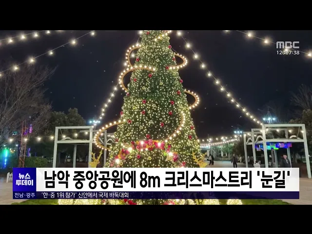 무안군은 연말연시를 맞아남악 중앙공원에 8미터 높이의대형 크리스마스 트리를 설치했다고 밝혔습니다. 무안군은 지난 2020년부터대형트리와 주변을 밝히는 조명,포토존 등을 설치해 야경을 꾸며왔으며 내년 설 명절까지 오후 5시 30분부터 밤 11시 사이 트리를 점등할 예정입니다.