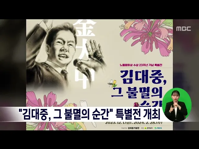 김대중 노벨평화상 기념관은 노벨평화상 수상 23주년을 기념해 ‘김대중, 그 불멸의 순간’ 특별전을 개최합니다. 특별전은 내년 2월 28일까지 김대중노벨평화상 기념관 컨벤션동 1층 기획전시실에서 계속됩니다.