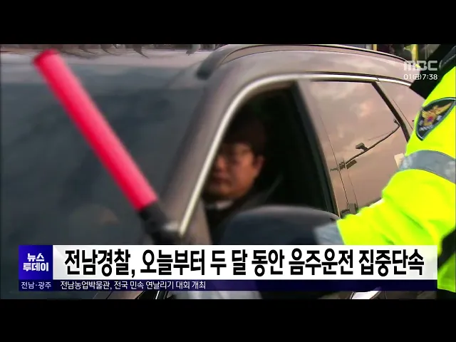 전남경찰청이 연말연시를 맞아음주운전 집중 단속에 나섭니다.전남경찰청은음주로 인한 교통사고 예방을 위해오늘(1)부터 두달 동안 주간과 야간에 수시로도내 곳곳에서 음주단속을 실시합니다.최근, 5년간 음주 교통사망사고를 보면시간대별로는 저녁 6시부터 새벽 2시 사이가68.1%로 가장 많았으며 요일별로는 월요일에 ...