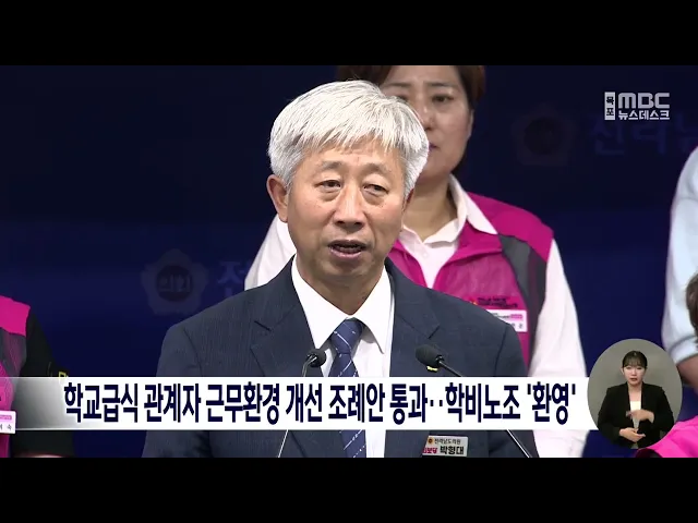 학교비정규직노동조합은 오늘(4일) 기자회견을 하고, 근무환경 개선을 위한 조례안이 전남도의회 교육위원회를 통과한 것을 환영한다고 밝혔습니다. 학비노조는 조례안에서 학교급식 노동자의 근무환경 개선을 위한 경비지원과 건강, 휴식보장을 위한 대체전담인력제 운영 등은 의미가 크다고 강조했습니다. '전남교육청 ...