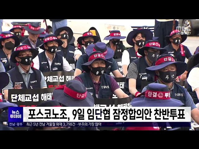 포스코노조가 오는 9일 조합원을 대상으로2023년 임금 및 단체교섭 잠정합의안에 대한찬반투표를 진행합니다.이번 투표에서과반수가 찬성하면 임단협이 최종 타결됩니다.지난 5월부터임단협 단체교섭을 진행한 포스코 노사는 지난달 31일 중앙노동위원회 마지막 조정회의 끝에잠정합의안을 도출했습니다.합의안의 주요 내용...