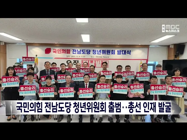 국민의힘 전남도당은 어제(4) 청년위원회 발대식을 열었습니다.발대식에는 김화진 도당위원장과 청년위원 등 30여 명이 참석해,청년 정책과 정치 참여 활성화 방안 등을 논의했습니다. 국민의힘 전남도당은중앙당이 내년 총선 후보로전남 청년층을 적극 영입할 것을 약속했다며, 인재 발굴에 힘쓸 계획이라고 밝혔습니다.