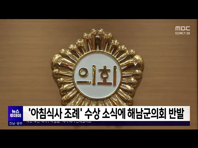 '아침식사 조례' 수상 소식에 해남군의회 반발