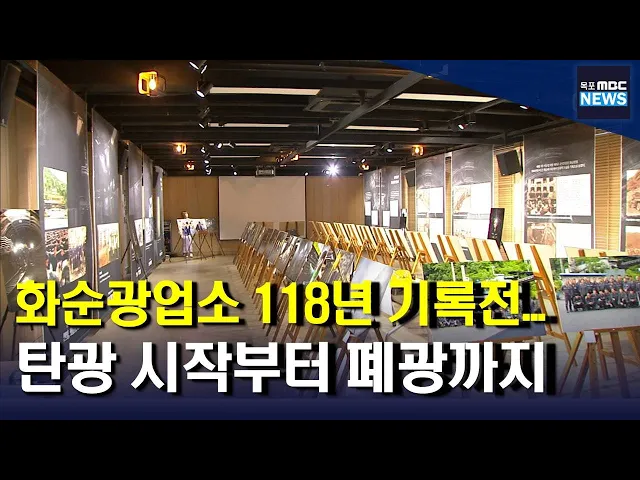 ◀ 앵 커 ▶화순광업소의 118년 역사를 알리는 기록전이 열렸습니다. 탄광 시작부터 폐광까지, 사진과 문서 등 다양한 기록물을 한 자리에 모았는데요.화순군은 더 많은 자료를 모아,앞으로 짓게 될 화순탄광 역사관에 전시할 계획입니다. 김초롱 기자의 보도입니다.◀ 리포트 ▶어두컴컴한 땅굴 안,한 광부가 안전모 전등 빛에...